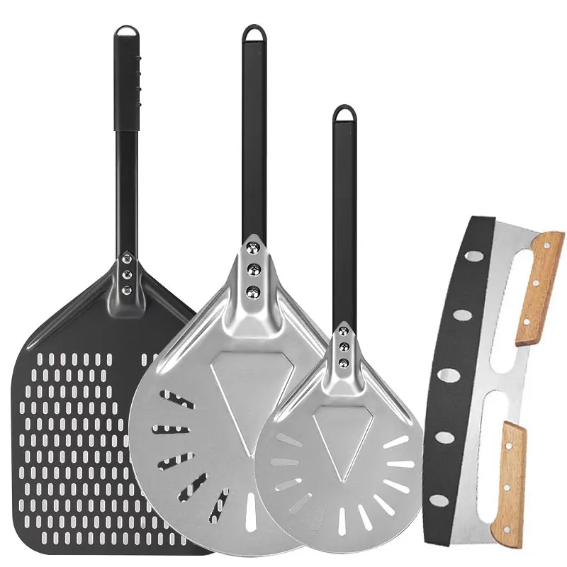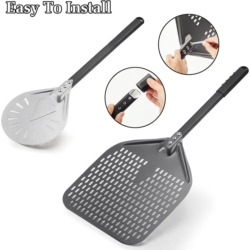 Perforierter Pizzaschieber aus Aluminium – 7/9/12 Zoll mit abnehmbarem Griff