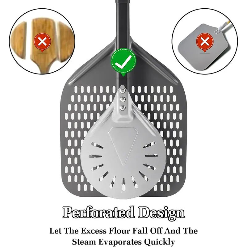 Perforierter Pizzaschieber für den Hausgebrauch – Professionelle 30 × 35 cm Schaufel aus eloxiertem Aluminium mit abnehmbarem Legierungsgriff für hausgemachte Pizza