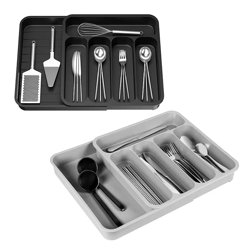 Ausziehbarer Besteckkasten für Schubladen – verstellbar, 6 Fächer