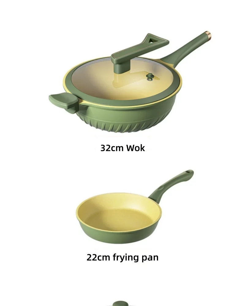 Giyoca Kochgeschirr-Set mit Medizinstein-Beschichtung – Wok, Suppentopf, Pfanne mit Glasdeckel